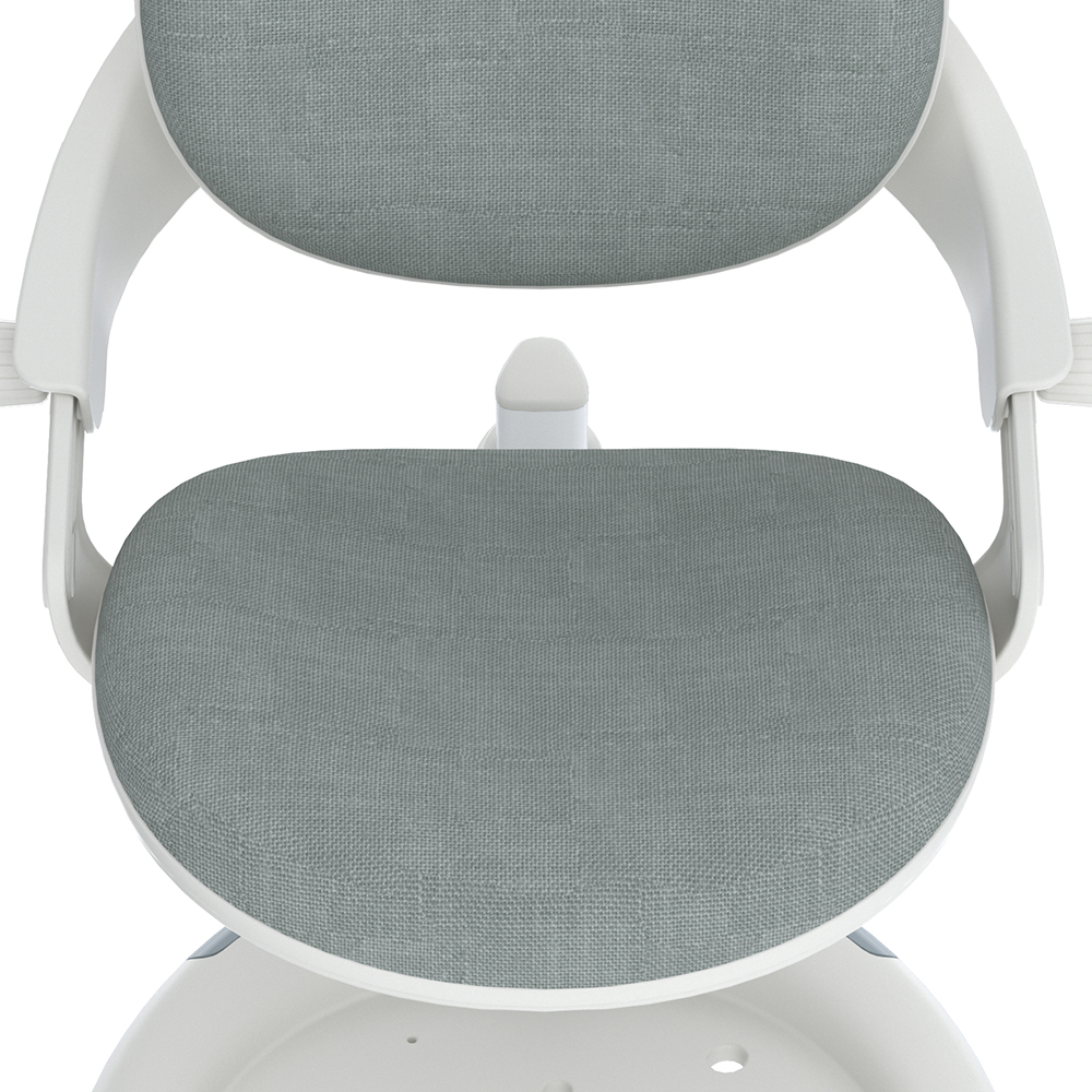 Спинка кресла сделана из дышащего материала, что обеспечивает комфорт в летний период времени. Ее ортопедическая форма обеспечивает правильное формирование осанки ребенка. Специальный дизайн спинки имеет две части которые производят эффект формирования осанки и ровных лопаток, сниманию негативных ощущений защемления мышц спины.