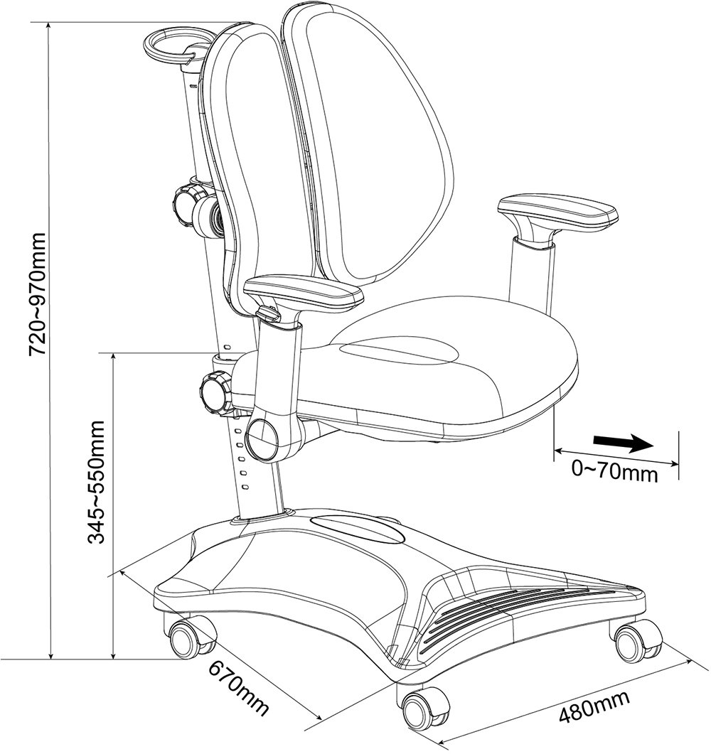 Для детей от 3 лет и до подросткового возраста. Подходит для роста от 110 до 170 см. Можно использовать как с растущей партой, так и с обычным письменным столом. Изменяя глубину спинки и высоту сидения, Вы подберете наиболее комфортное положение для ребенка. Колеса имеют функцию стоп-вращения при посадке в кресло ребенка свыше 15 кг. Кресло имеет подставку для ног.