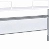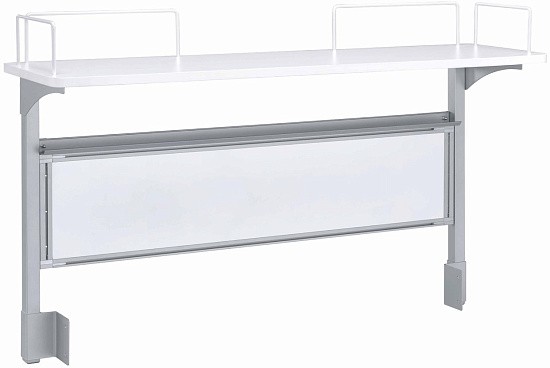 Монтажная доска с книжной полкой Coobee. Светлая доска предназначена для магнитов и рисования на ней смываемыми фломастерами. Вверху находится книжная полка. Монтажная доска легко фиксируется с помощью двух держателей к столу.