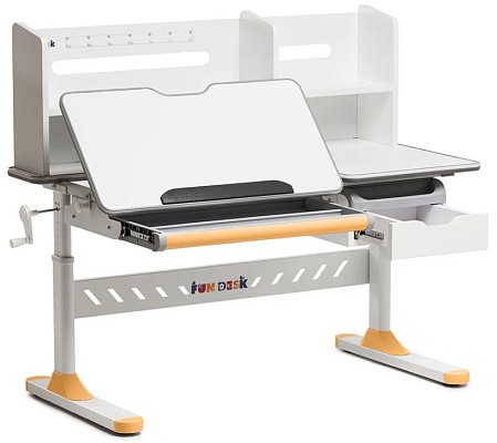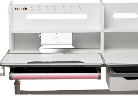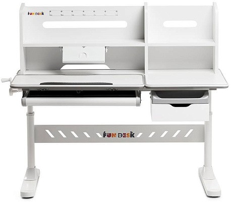 «ФанДеск» могут регулировать высоту парты под рост ребенка, а столешница может изменять угол наклона. Каждую модель можно оборудовать дополнительными аксессуарами. Парта «FunDesk» имеет множество ящиков для хранения канцелярских принадлежностей и тетрадей.