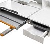 Стол имеет встроенную в надстройку, выдвижную подставку для книг, что позволяет сэкономить больше свободного места на рабочей поверхности.