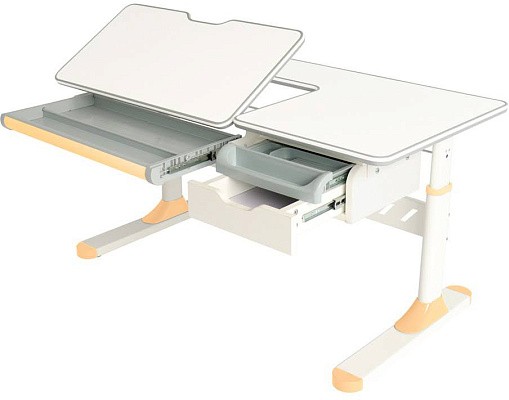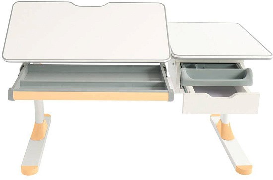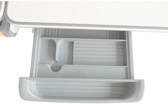 Парта имеет три выдвижных ящика, два из трех ящиков имеют секционное разделение, для комфортного хранения карандашей, ручек и прочей мелкой канцелярии.