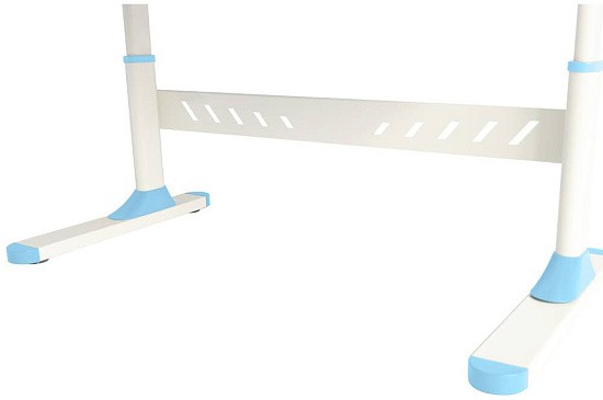 Парта имеет устойчивое металлическое основание с возможностью подстройки под неровности пола, благодаря регулируемым 4 шайбам на ножках парты.