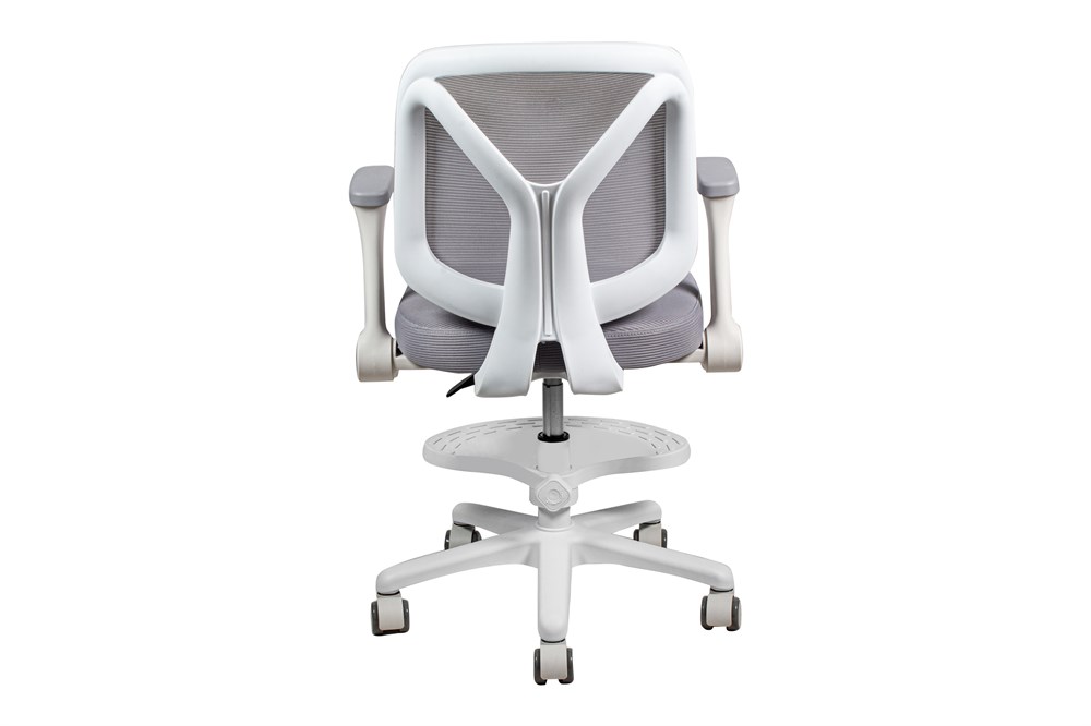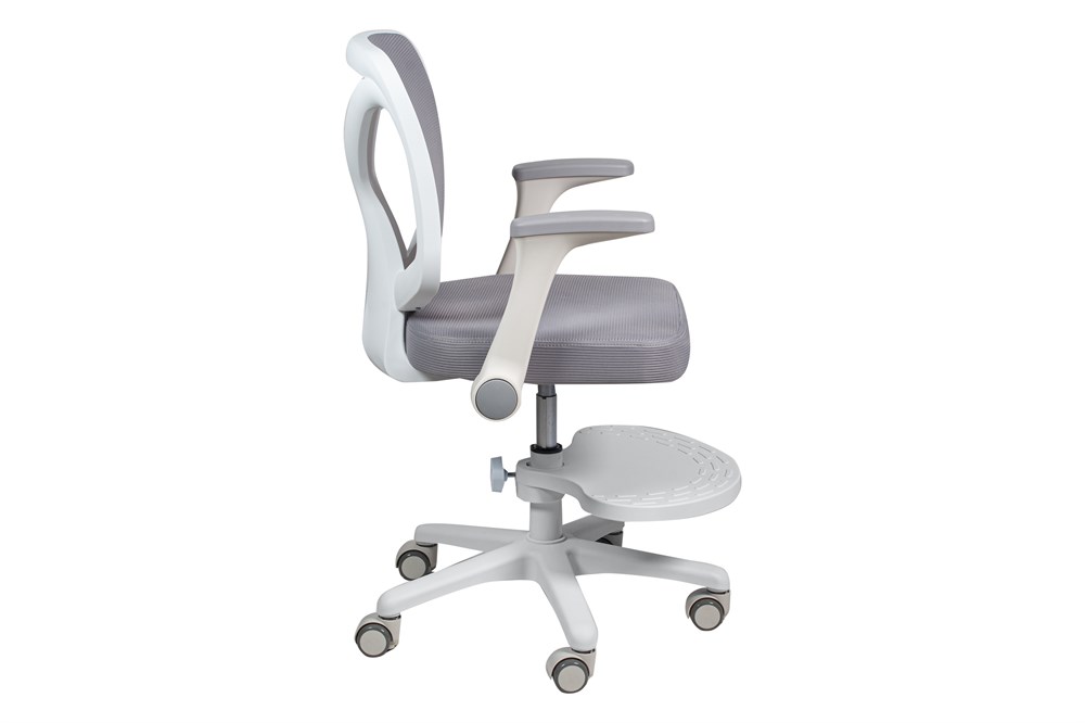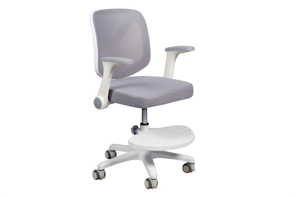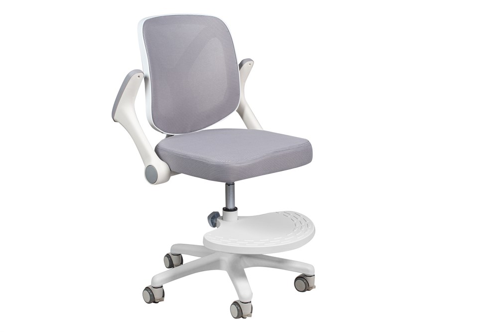 Оснащенное съемными подлокотниками и регулируемой подставкой для ног, кресло обеспечивает дополнительный комфорт и удобство. Подлокотники легко снимаются, если они не используются, а подставка для ног регулируется под рост и предпочтения ребенка, что снижает нагрузку на спину и ноги.
