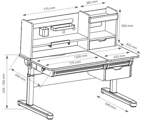 «ФанДеск» могут регулировать высоту парты под рост ребенка, а столешница может изменять угол наклона. Каждую модель можно оборудовать дополнительными аксессуарами. Парта «FunDesk» имеет множество ящиков для хранения канцелярских принадлежностей и тетрадей.