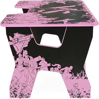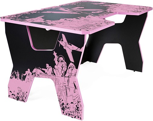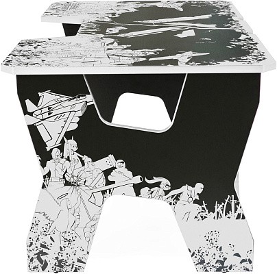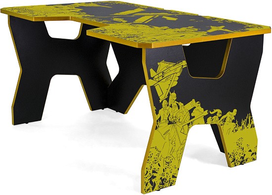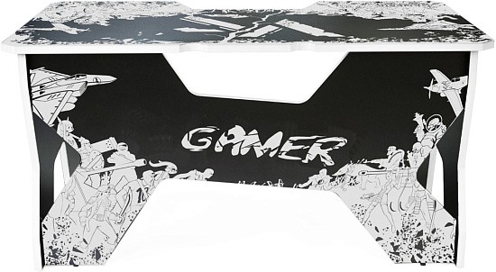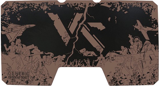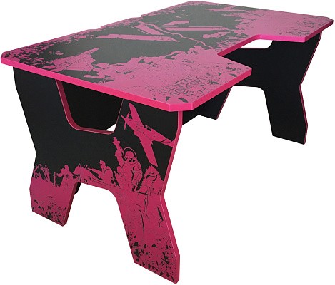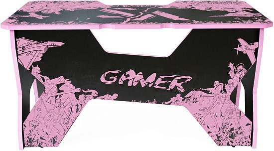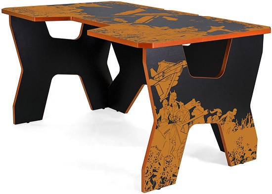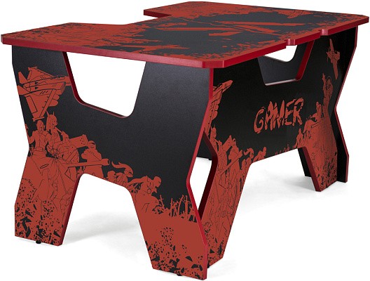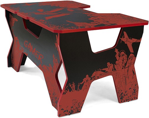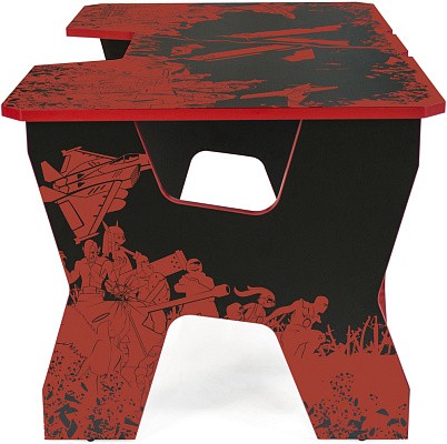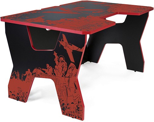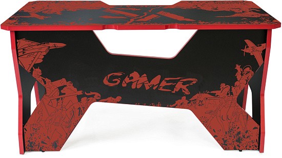 Generic Comfort Gamer2/VS - стильный компьютерный стол с необычным дизайном. Кромки стола выполнены в красном цвете, а на черную основу методом ультрафиолетовой печати нанесен красный рисунок. За счет такой технологии, изображение получается ярким, насыщенным и при этом долговечным, с высокой стойкостью к истиранию. Рисунок наносится дополнительным слоем, вследствие чего выступает на 0,2 мм над поверхностью. Поэтому, на данном столе рекомендуется использовать коврик для мышки.