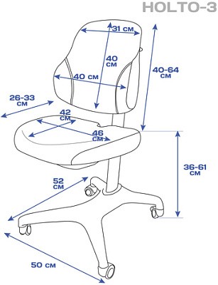 Детское кресло Holto-3 для детей от 6 лет и до подросткового возраста. Можно использовать как с растущей партой, так и с обычной. Изменяя глубину спинки и высоту сидения, Вы подберете наиболее комфортное положение для ребенка. Колеса имеют функцию стоп-вращения при посадке в кресло человека свыше 25 кг. Малыш не будет отвлекаться от уроков, катаясь на кресле. Двухцветный дизайн обивки прекрасно будет смотреться в Вашем интерьере. Изменяя высоту спинки и глубину сидения, фиксатор следует ослабить, выбирайте оптимальную высоту и только после щелчка закрутите фиксаторы. Только после щелчка фиксатора сиденье и спинка надежно и правильно установлены.