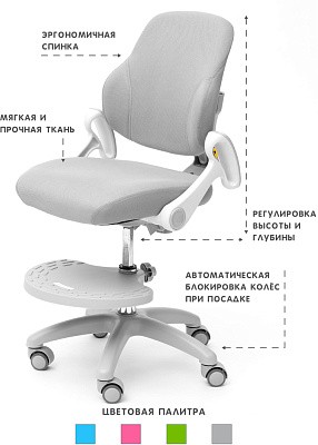 Детское кресло Holto-4 для детей от 3 лет и до подросткового возраста. Можно использовать как с растущей партой, так и с обычной. Изменяя глубину спинки и высоту сидения, Вы подберете наиболее комфортное положение для ребенка. Колеса имеют функцию стоп-вращения при посадке в кресло человека свыше 25 кг. Малыш не будет отвлекаться от уроков, катаясь на кресле. Двухцветный дизайн обивки прекрасно будет смотреться в Вашем интерьере. Регулируя высоту спинки и сидения, фиксатор следует ослабить, выбирайте оптимальную высоту и только после щелчка закрутите фиксаторы. Только после щелчка фиксатора сиденье и спинка надежно и правильно установлены.
