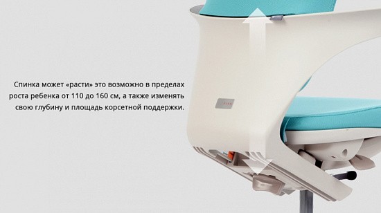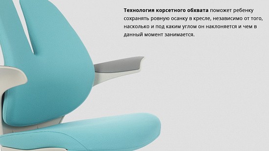 • Динамичное сиденье активно участвует в процессе направления детской осанки в нужное русло. С его помощью спинка кресла и спина пользователя становятся единым целым и принимают анатомически правильное положение.
