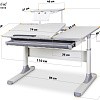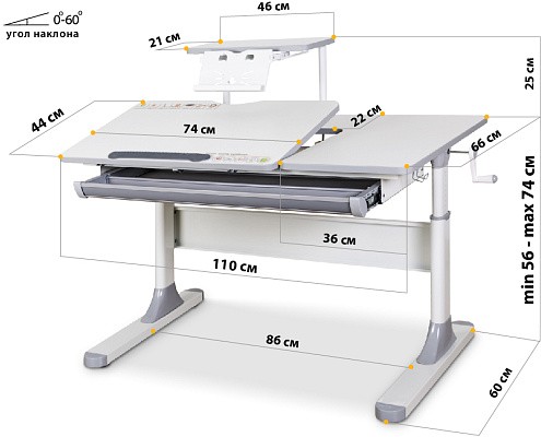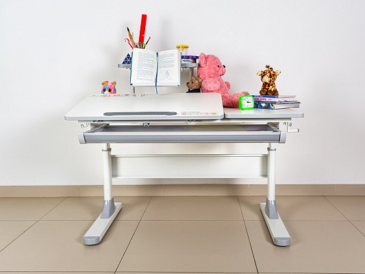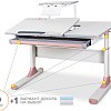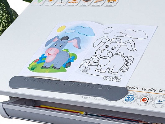 Подвижная часть столешницы меняет свой угол наклона с помощью специального газлифта. Одно плавное нажатие и вы трансформируете рабочую зону для письма и чтения, а благодаря большому углу наклона (до 60 градусов) столешницу можно использовать для рисования, как мольберт. Чтобы ребенок не травмировался, когда самостоятельно будет менять угол наклона, на столешнице есть безопасный зазор.