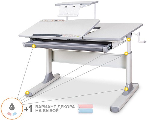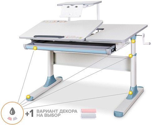 Важной особенностью данного стола является наличие сменных цветных накладок. Приобретайте полную комплектацию стола в сером цвете и получите розовые либо голубые накладки совершенно бесплатно! Накладки меняются на ножках и выдвижном органайзере.. Меняйте цвет в зависимости от настроения!