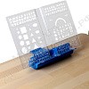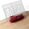 Рассмотрим подробней возможности самого трафарета: линейка и транспортир, буквы русского и латинского алфавитов, цифры и геометрические фигуры, специальные символы и различные знаки. Трафареты просто необходимы ребёнку в начальной школе, так как позволяют быстрее осуществить постановку руки к письму, и просто помогают создавать красивые записи и изображения.