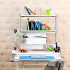 По краям полок сделаны металлические ограничители, чтобы располагать книги и другие принадлежности более устойчиво.