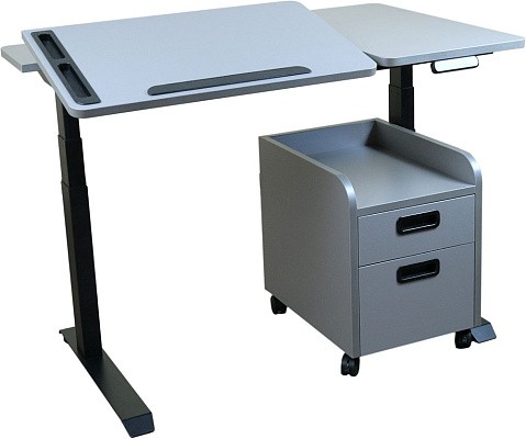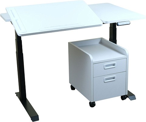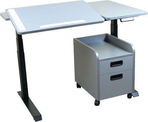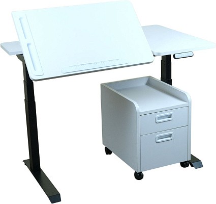 Электронный стол Trifecta со встроенной столешницей с изменяемым углом наклона— это самый эргономичный вариант среди всех столов с электроприводом! Рабочая поверхность столешницы снабжена органайзером для хранения канцтоваров, предотвращая их падение при изменении угла наклона. А также магнитной линейкой для удержания тетрадей во время письма.