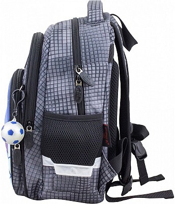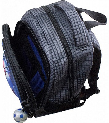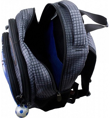 В школьном рюкзаке два основных отделения и карман-органайзер. Основное отделение с 2 двумя разделителями и резинкой для крепления школьных принадлежностей. Второе отделение без наполнения. Спереди вместительный карман на молнии украшенный объёмной 3D картинкой с органайзером для письменных принадлежностей. По бокам карманы-сеточки на резинке.